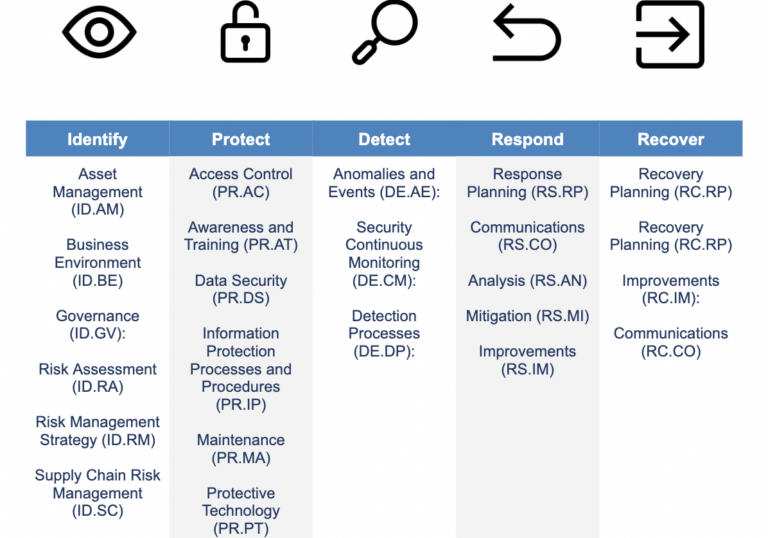 Evaluación de la ciberseguridad utilizando las 6 Funciones del NIST CSF 2.0 (Gobernar, Identificar, Proteger, Detectar, Responder, Recuperar) para determinar el nivel de madurez actual.